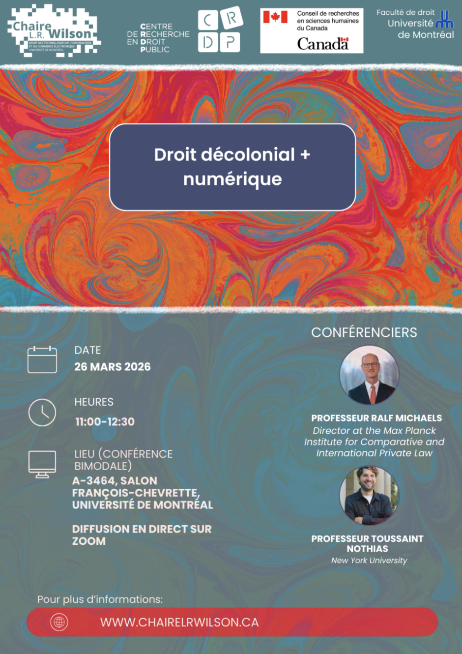 📍 En personne à l’Université de Montréal (A-3464, Salon François-Chevrette, Faculté de droit, UdeM);